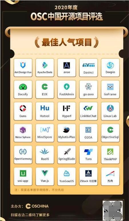 1、入选“2020年度OSC中国开源项目Top30”榜单